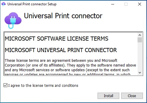 - Download the installation file (available at the following link) or from the Azure portal in the Universal Print section.