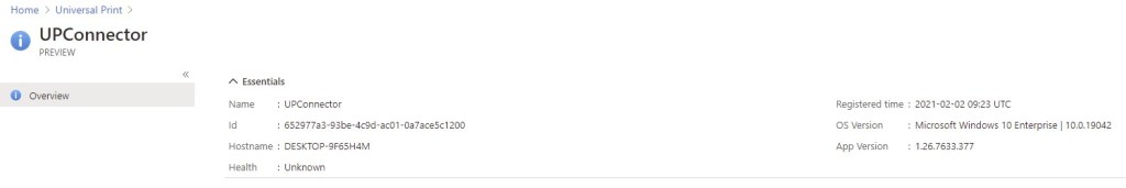 - At the end of the procedure, the new connector will be visible on the Azure portal in the appropriate Universal Print – Connectors section.