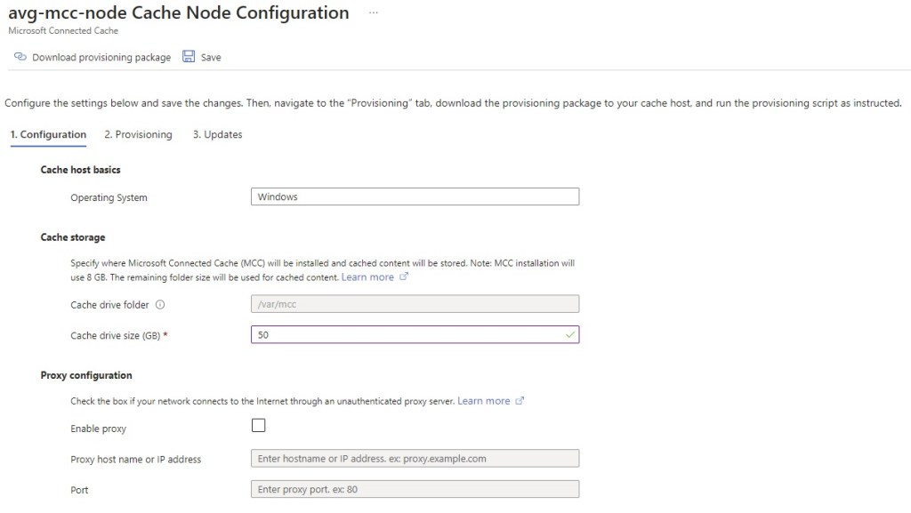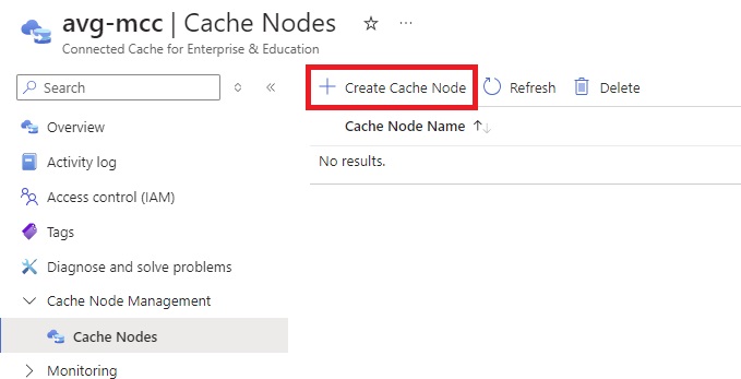 Once you have finished creating the Microsoft Connected Cache resource, you now need to create a Cache node: