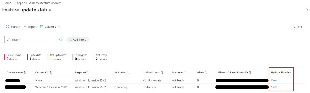 - The Device Update Journey supports IT administrators in troubleshooting by showing all the steps an individual device goes through during the various deployment phases.